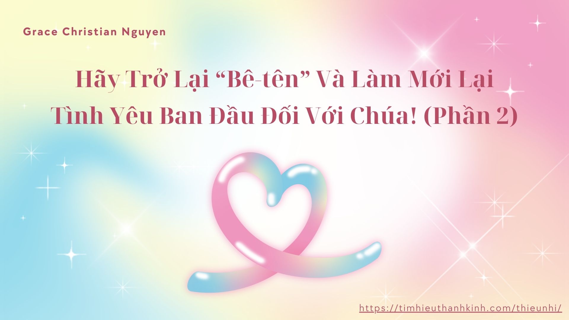 Grace Christian Nguyen Câu gốc: “Vì đây là ý muốn Đức Chúa Trời cho sự nên thánh của các anh chị em.” (I Tê-sa-lô-ni-ca 4:3a). Các câu hỏi gợi ý: Continue Reading →