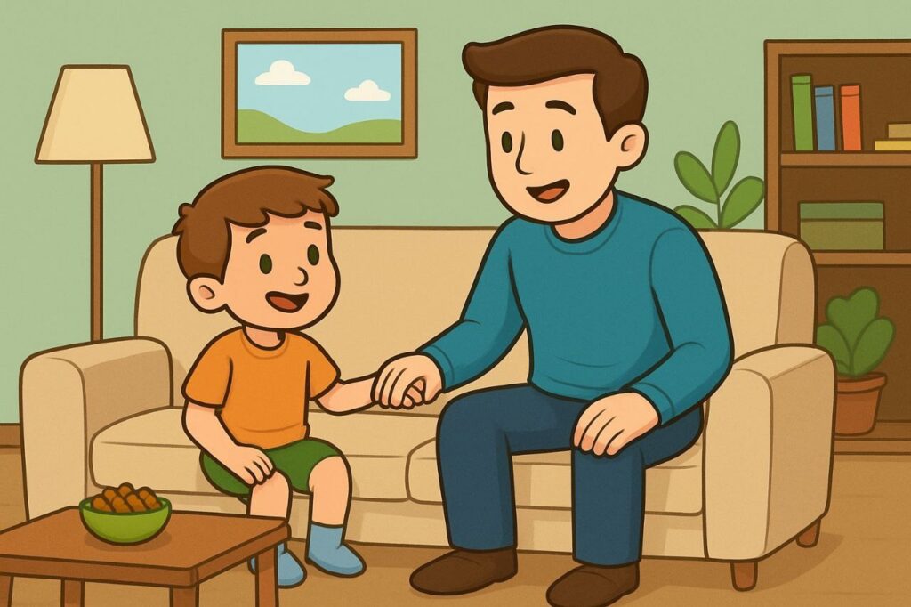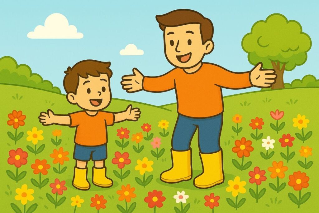 Chủ Nhật, bạn A được nghỉ học, thời tiết thật đẹp nên bố muốn đưa bạn A đi chơi. Bố biết một nơi rất đẹp, có đầy hoa cỏ. Bố nói cho A nghe và A rất hào hứng.
