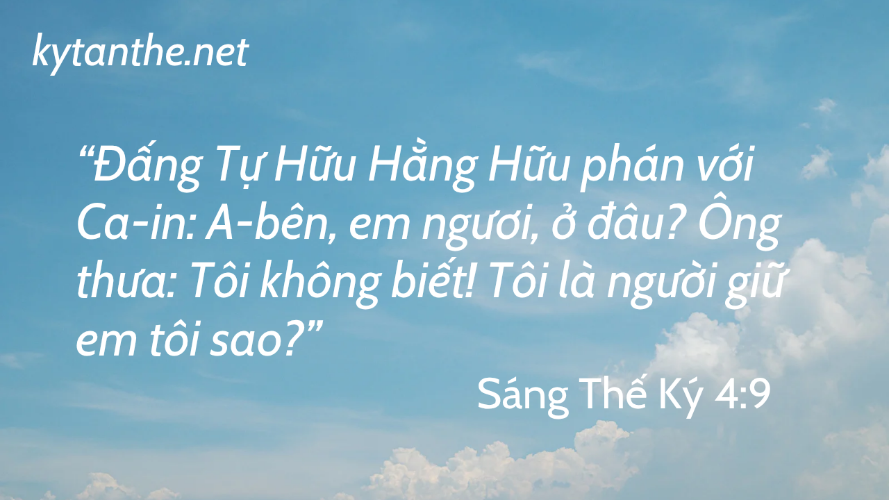 Câu Gốc: “Đấng Tự Hữu Hằng Hữu phán với Ca-in: A-bên, em ngươi, ở đâu? Ông thưa: Tôi không biết! Tôi là người giữ em tôi sao?” Sáng Thế Ký Continue Reading →