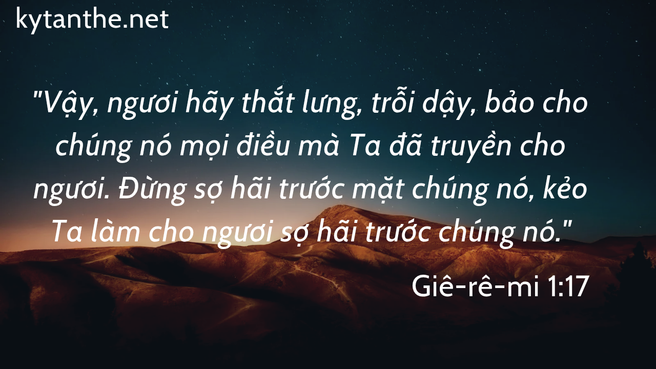 Câu Gốc: “Vậy, ngươi hãy thắt lưng, trỗi dậy, bảo cho chúng nó mọi điều mà Ta đã truyền cho ngươi. Đừng sợ hãi trước mặt chúng nó, kẻo Ta Continue Reading →
