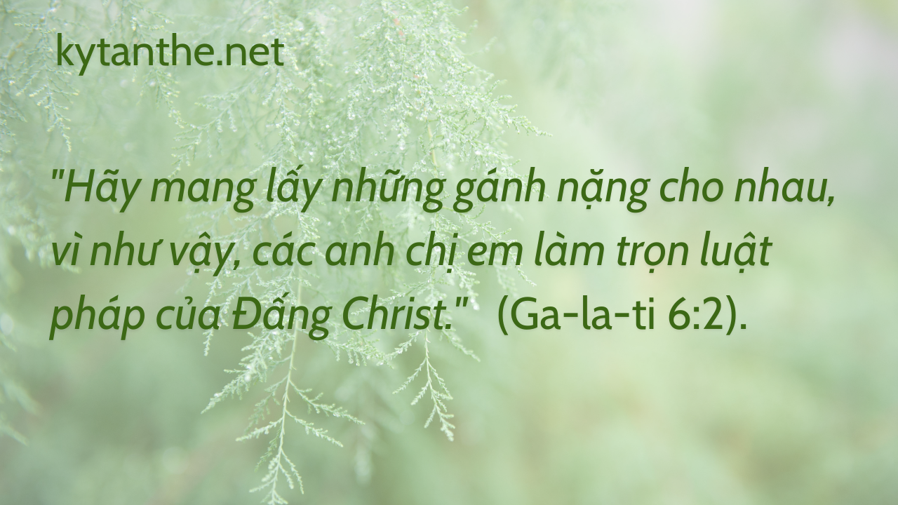 Câu Gốc: “Hãy mang lấy những gánh nặng cho nhau, vì như vậy, các anh chị em làm trọn luật pháp của Đấng Christ.” (Ga-la-ti 6:2). Thánh Kinh Tham Khảo: Continue Reading →