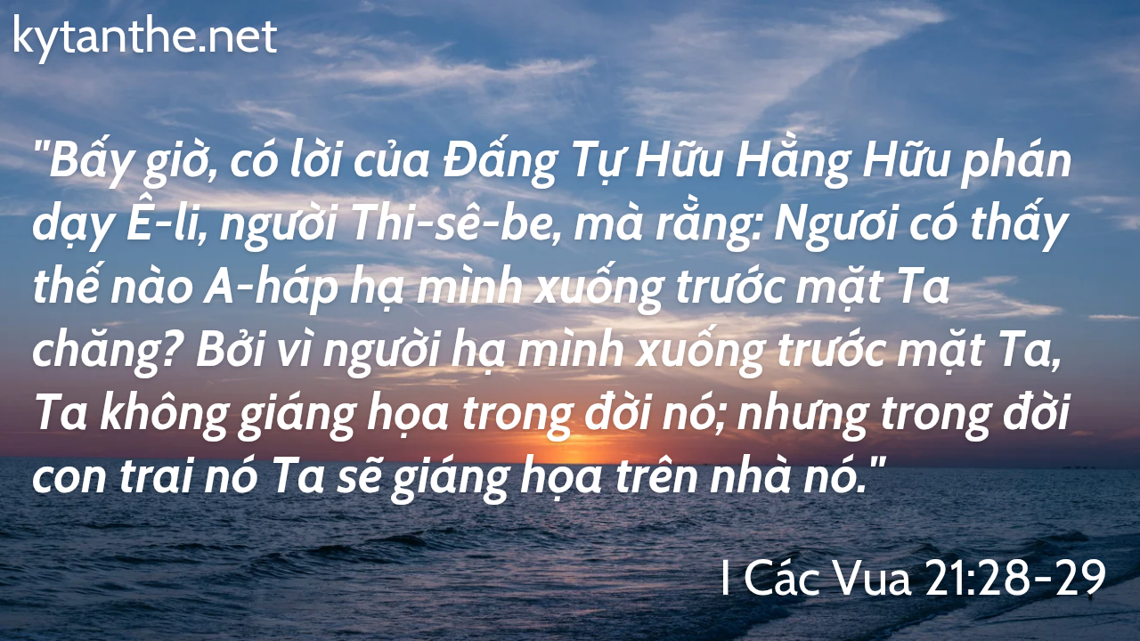 Câu Gốc: “Bấy giờ, có lời của Đấng Tự Hữu Hằng Hữu phán dạy Ê-li, người Thi-sê-be, mà rằng: Ngươi có thấy thế nào A-háp hạ mình xuống trước mặt Continue Reading →