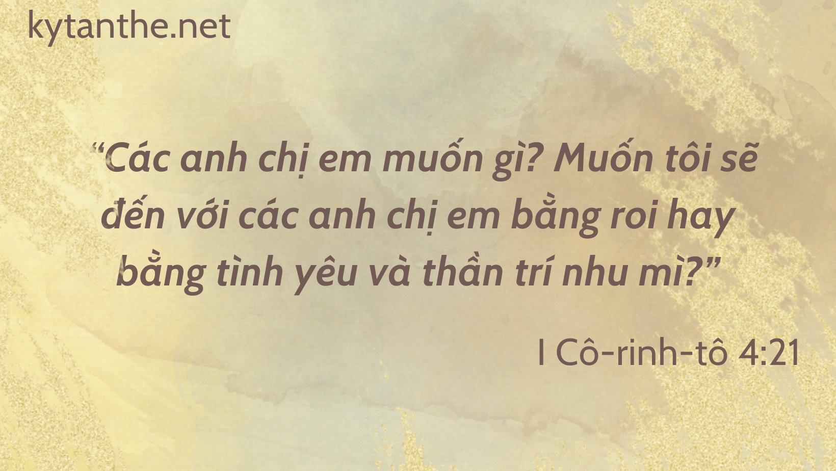 Câu Gốc: “Các anh chị em muốn gì? Muốn tôi sẽ đến với các anh chị em bằng roi hay bằng tình yêu và thần trí nhu mì?” (I Cô-rinh-tô Continue Reading →